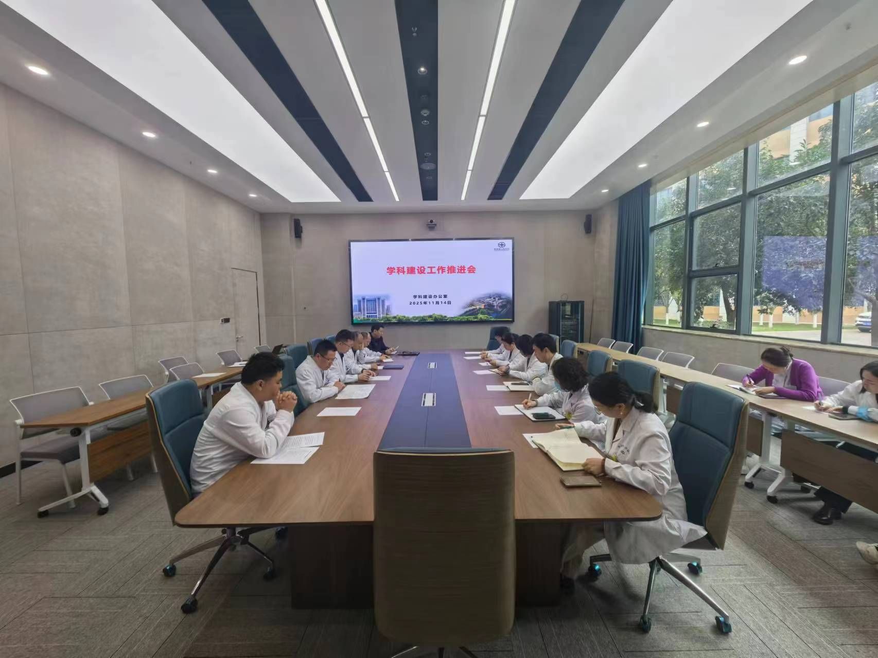 为加快推进医院重点工作,统筹“一院两区”学科协同发展,切实推动我院第一批特色学科高质量发展项目建设,根据院领导统一安排,学科办于11月14日在西咸院区组织召开了学科建设推进会。会议由学科办主任田应选主持,西咸院区临床医技科室负责人、“四特”建设项目负责人及部分学科骨干参加了会议。