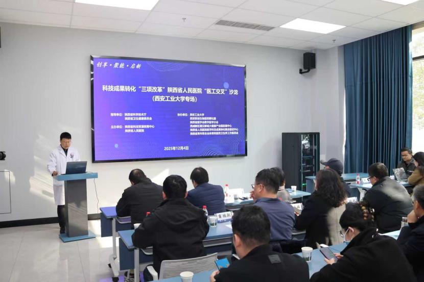 12月4日,由陕西省科学技术厅、陕西省卫生健康委员会指导,陕西省科技资源统筹中心与陕西省人民医院联合主办的“医工交叉沙龙”第六场活动在我院西咸院区举办。本次活动邀请西安工业大学四个高水平医工交叉科研团队作专题报告,医院相关科室负责人、科研骨干及青年医师代表共同参与研讨。
