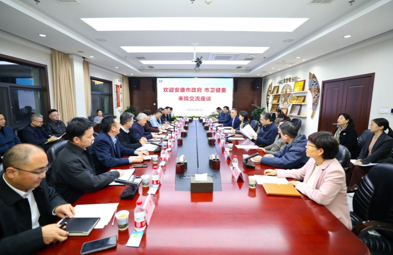 12月15日,安康市政府副市长杨首艳带队赴我院开展座谈会。会议围绕深化医疗协作、优化帮扶举措等展开深入交流,旨在为后续医疗资源下沉、基层医疗能力提升筑牢合作根基。安康市政府副秘书长冉远富、政府办综合六科副科长张先会,市卫健委党委书记、主任王黎及相关班子成员,安康市中心医院、市中医医院等多家市属医院负责人一同来访;我院党委书记张玉莲、在院领导班子及相关职能科室负责人参加座谈会。副院长王建华主持会议。