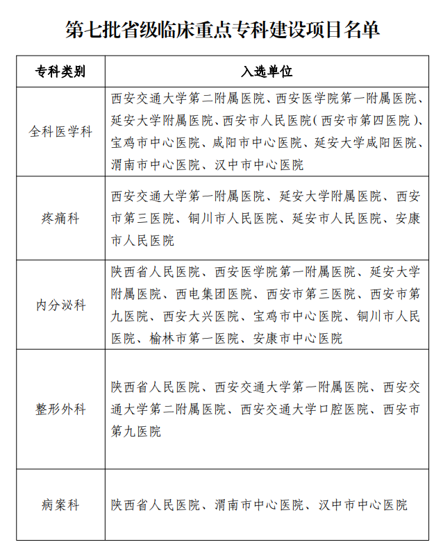 近日,省卫健委下发通知,我院病案科、整形外科、内分泌科被确立为陕西省第七批省级临床重点专科建设项目。