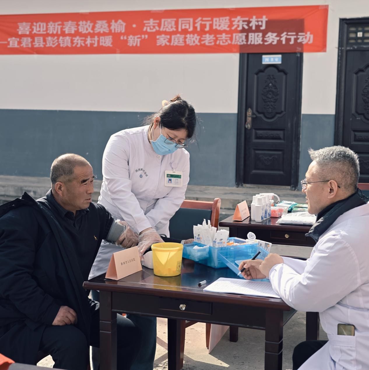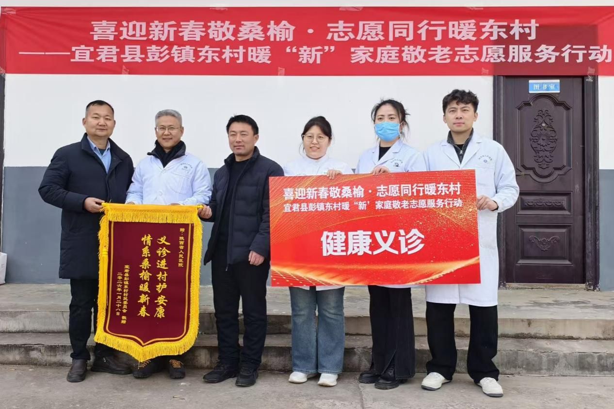 2026年1月28日,铜川市宜君县彭镇东村村委会广场暖意融融、热闹非凡。由陕西省供销合作总社、陕西省青年联合会社会组织和社会中介界别牵头主办,宜君县政府、彭镇党委政府等20家单位联合举办的“喜迎新春敬桑榆・志愿同行暖东村”志愿服务活动在此温情举行。受陕西青年社会组织培育发展中心邀请,陕西省人民医院派出眼科、全科医学科、内分泌科4名青年医务志愿者专程参与,将优质医疗服务与新春健康祝福送到村民“家门口”,以实际行动响应国家优质医疗资源下沉、乡村振兴及“我为群众办实事”政策号召,彰显新时代青年医务工作者的使命担当。