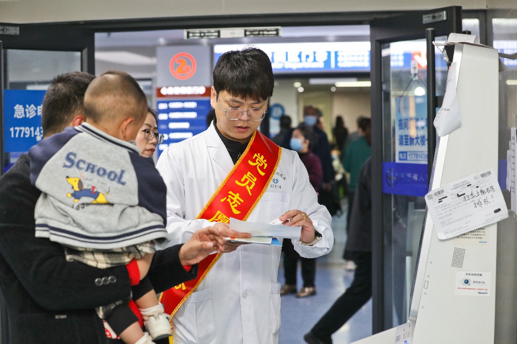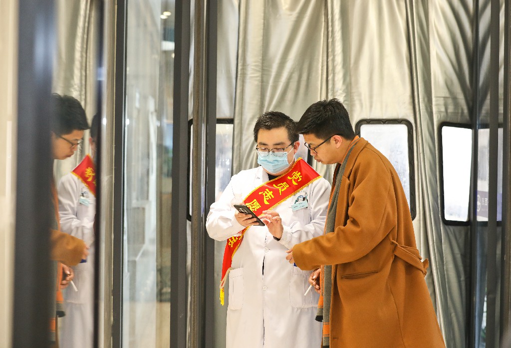 正在行政部门轮转的血液内科医生付楠一上岗,便被患者团团围住。咨询科室位置、询问检查流程、帮助挂当日号……短短一个小时,她先后接待了七八十位患者的咨询。“作为临床医生,平时在病房和门诊更多地是处理具体病症。今天站在这里,听到的是患者最直接、最迫切的困惑,‘医生,我该去哪儿?’‘这个检查要等多久?’”付楠感慨道,“这段经历让我更真实地触摸到患者的焦虑与不易,也对医院的布局和流程有了更立体的了解。将来回到诊室,我一定能更好地换位思考,为他们提供更有温度的医疗服务。”