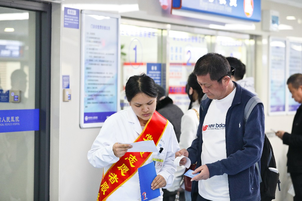 在门诊3楼,来自医学科学院创建办公室的王慧杰,第一次以志愿者的身份站到了服务患者的第一线。一下午的忙碌,让他对“服务”二字有了全新的理解,“今天咨询的老年患者特别多,他们对自助机不熟悉,更需要我们放慢语速、耐心引导。还有几位外籍患者,虽然语言沟通有些障碍,但最终也顺利帮到了他们。”他感慨道,这次服务是一次难得的耐心锻炼和沟通实战。“它让我明白,增强服务意识不是一句口号,而是面对不同患者时,能真正沉下心来倾听、理解和帮助。”