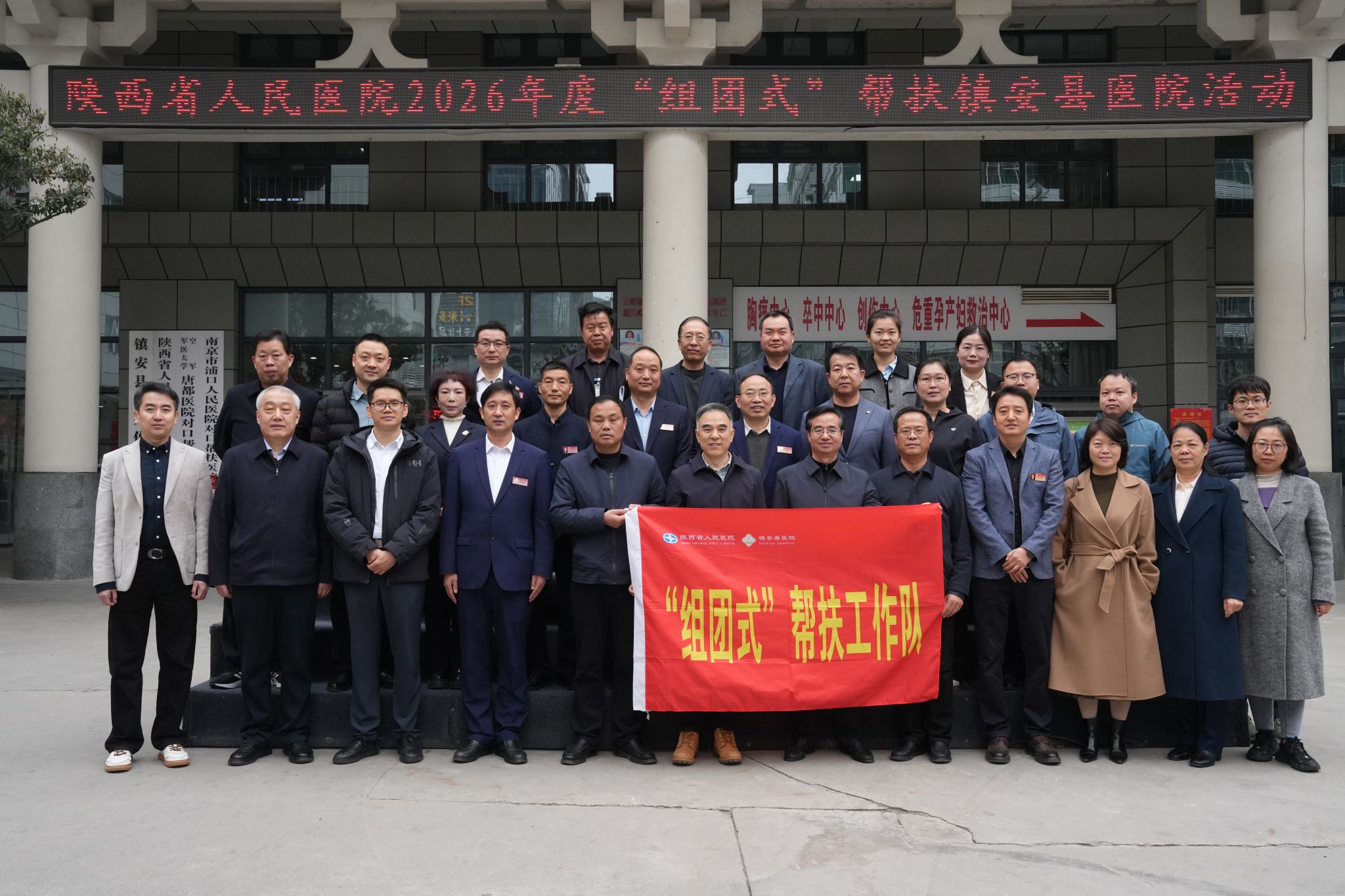 3月12日,王建华副院长带领医务处及相关临床科室负责人一行,赴镇安县医院开展“组团式”帮扶工作座谈,看望慰问驻点帮扶医疗队员,并就2026年度帮扶专业进行实地调研。镇安县政府副县长马博,县卫健局党组书记、局长项行安,县委组织部副部长樊斌,县医院党委书记熊英俭、院长段宝军及班子成员、相关科室负责人参加座谈。
