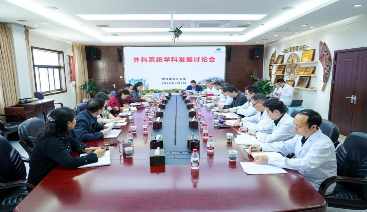 为扎实推进“学科建设攻坚年”各项任务落地见效,深入贯彻落实医院高质量发展提升及“四特”学科建设攻坚行动会议精神,进一步强化外科系统学科建设,提升疑难重症救治能力与医院核心竞争力,4月1日,宋张骏院长带领院办、学科办、护理部、医保处、法务处、科研处、财务处等职能部门负责人,深入开展外科系统专题调研,通过座谈讨论的方式,逐一听取骨外科、普外一科、普外二科、心脏外科、神经外科、肛肠外科、耳鼻咽喉头颈外科、胸外科、烧伤整形美容外科等科室的2026年度学科建设汇报,直面问题、把脉问诊、现场办公。