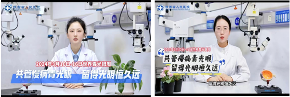 眼科彭洁医生及护士郭晶晶精心准备并录制了青光眼科普视频,旨在宣传青光眼,让更多的人了解青光眼及相关护理知识。视频在医院官方公众号及院内视频栏滚动播放,取得了良好的宣传效果。