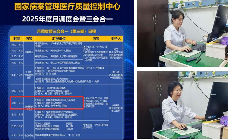 此次分享会吸引了全国1.6万余名病案专业人员参与。会上,我院病案中心舒歌以临床手术病例为切入点,作《乳腺癌疾病和手术分类编码方案》专题报告,系统阐述了乳腺癌相关概念、疾病编码规则、手术编码要点及典型案例分析,为乳腺癌编码工作提供了规范化指导。病案中心闫璐主管技师作为指导老师对分享内容进行了专业点评。与会专家对我院提出的编码思路与创新点给予高度评价,国家病案质控中心专家李丽静教授特别指出:“该案例深度融合了临床诊疗与病案编码实践,具有示范意义。”