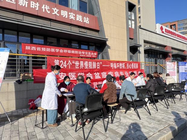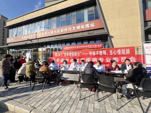 11月19日,在第24个世界慢阻肺日来临之际,西咸呼吸与危重症医学科联合多学科及陕西省护理学会社区专委会、中华护理学会内科护理专委会在窑店街道万科社区开展以“呼吸不顺畅,当心慢阻肺病”为主题的社区公益义诊活动,将专业肺健康服务送到居民家门口。