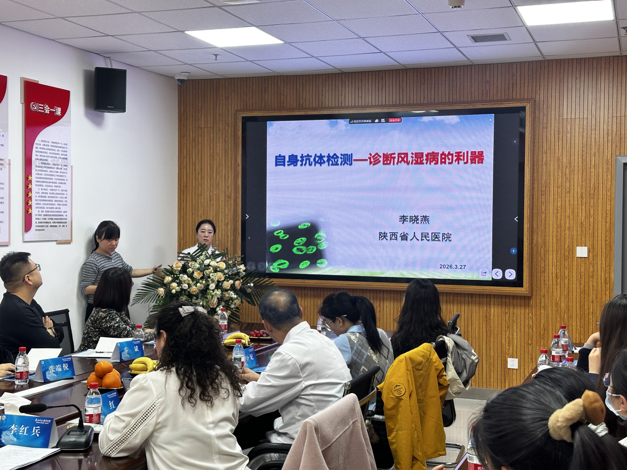 学术环节,陕西省人民医院风湿免疫科李晓燕主任医师围绕风湿免疫性疾病诊断的关键技术,以《自身抗体检测——诊断风湿病的利器》为题开展专题学术讲座,深度剖析自身抗体检测在风湿免疫疾病早期筛查、临床分型、诊疗方案制定中的核心作用,结合典型案例讲解检测结果精准解读技巧,并现场答疑解惑,针对性解决基层临床实操难题。渭南市中心医院李史恬医师分享了一例诊断为IgG4相关性疾病的疑难病例;陕西省人民医院风湿免疫科张端倪主治医师讲解了类风湿关节炎和痛风性关节炎规范化诊疗调查问卷在临床中的应用。学术讲座后,李晓燕主任医师深入病房开展教学查房,对危重症、疑难病例进行细致研判,逐一解答临床诊疗疑问,并针对类风湿关节炎、强直性脊柱炎、系统性红斑狼疮、白塞病等常见高发风湿免疫疾病的规范化诊断、个体化治疗给出专业指导方案。