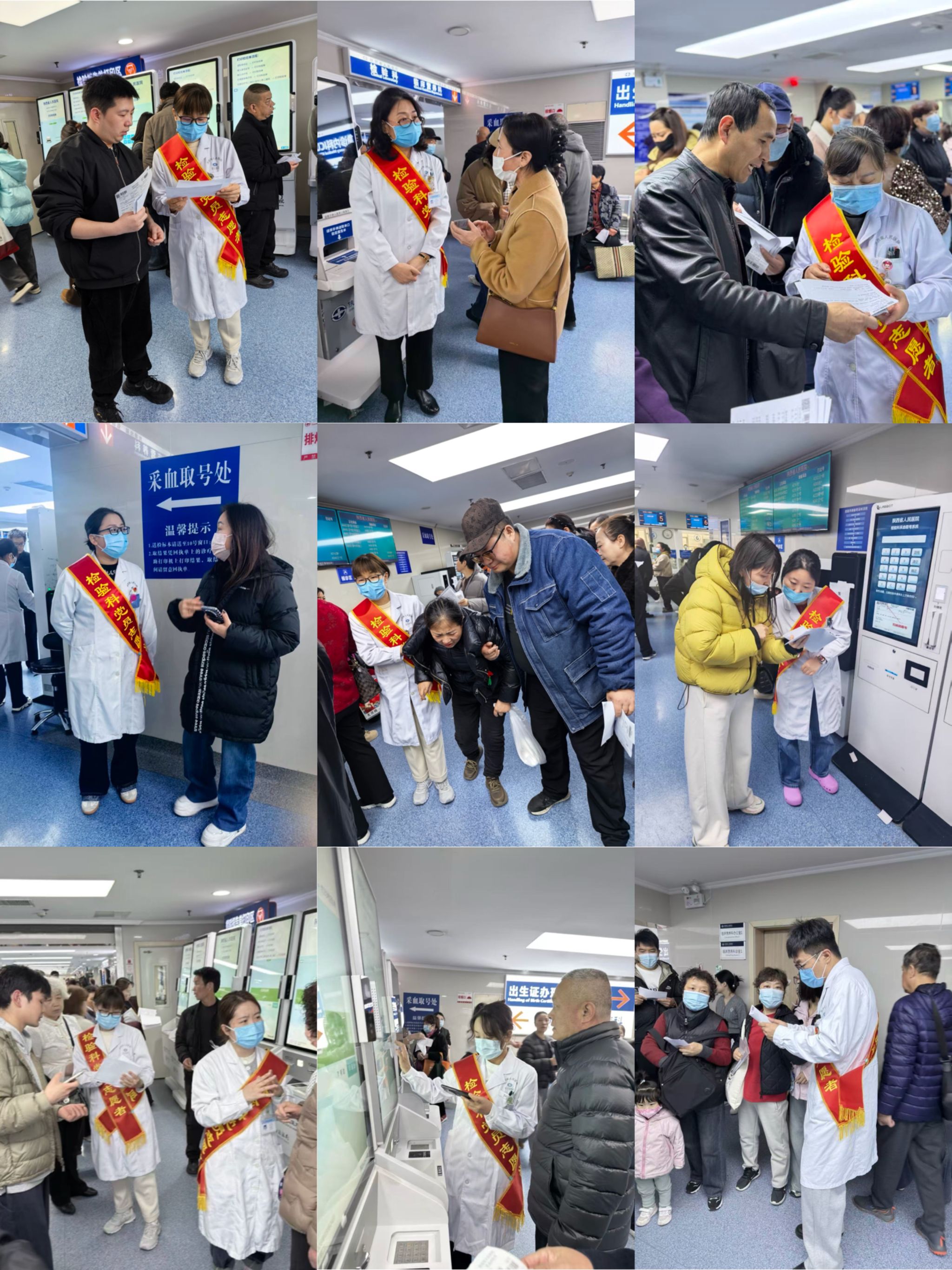 此次志愿服务贯穿三月全月,检验科党支部结合科室检验工作特性,科学制定排班表,合理统筹党员工作与志愿服务时间,确保每日门诊检验大厅、采血窗口、自助报告打印区、患者等候区等关键点位,均有党员志愿者在岗服务,实现志愿服务无空档、患者帮扶全覆盖。活动启动以来,支部党员们主动放弃休息时间,身着志愿标识,以饱满的热情、耐心的态度投入到每一次服务中,聚焦患者就医过程中的急难愁盼问题,提供精准化、暖心式帮扶。