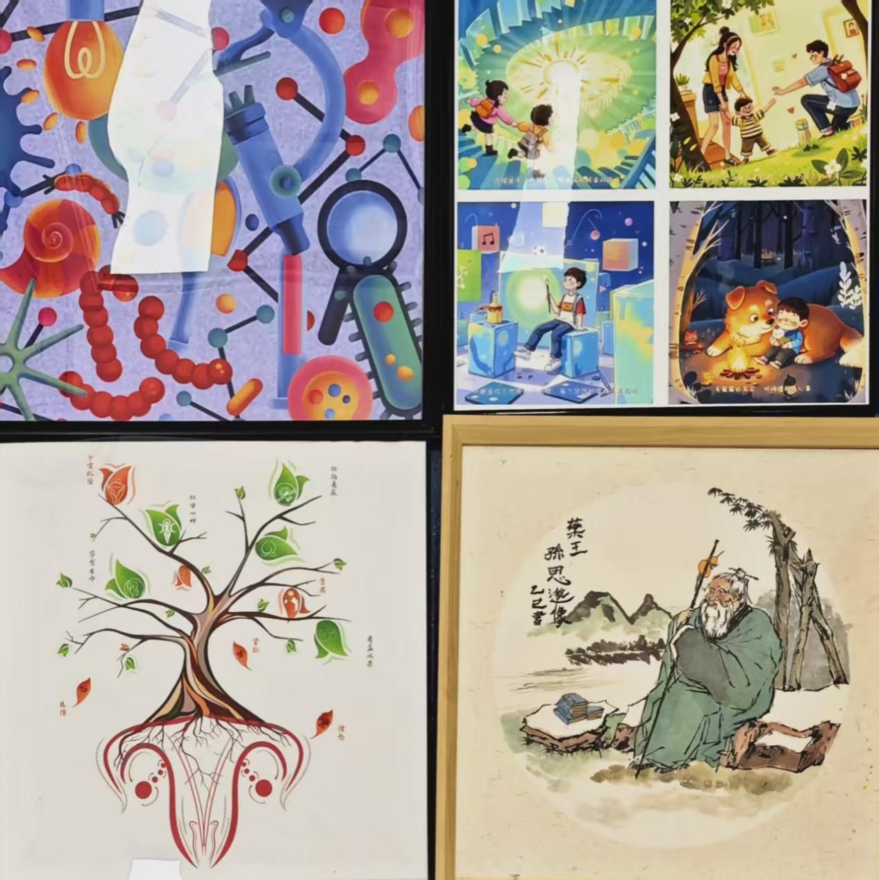 学生代表将十幅画作郑重交到乳腺诊疗中心首席专家宋张骏教授手中,详细介绍了每幅作品的创作理念——有的以药王孙思邈为主题,寓意生命的坚韧与美好;有的以柔和的光影为基调,传递温暖与希望;有的以简洁的线条勾勒生命力量,鼓励患者勇敢面对疾病。画作色彩明快、充满正能量,兼具艺术美感与情感温度,让在场的医护人员和患者深受触动。