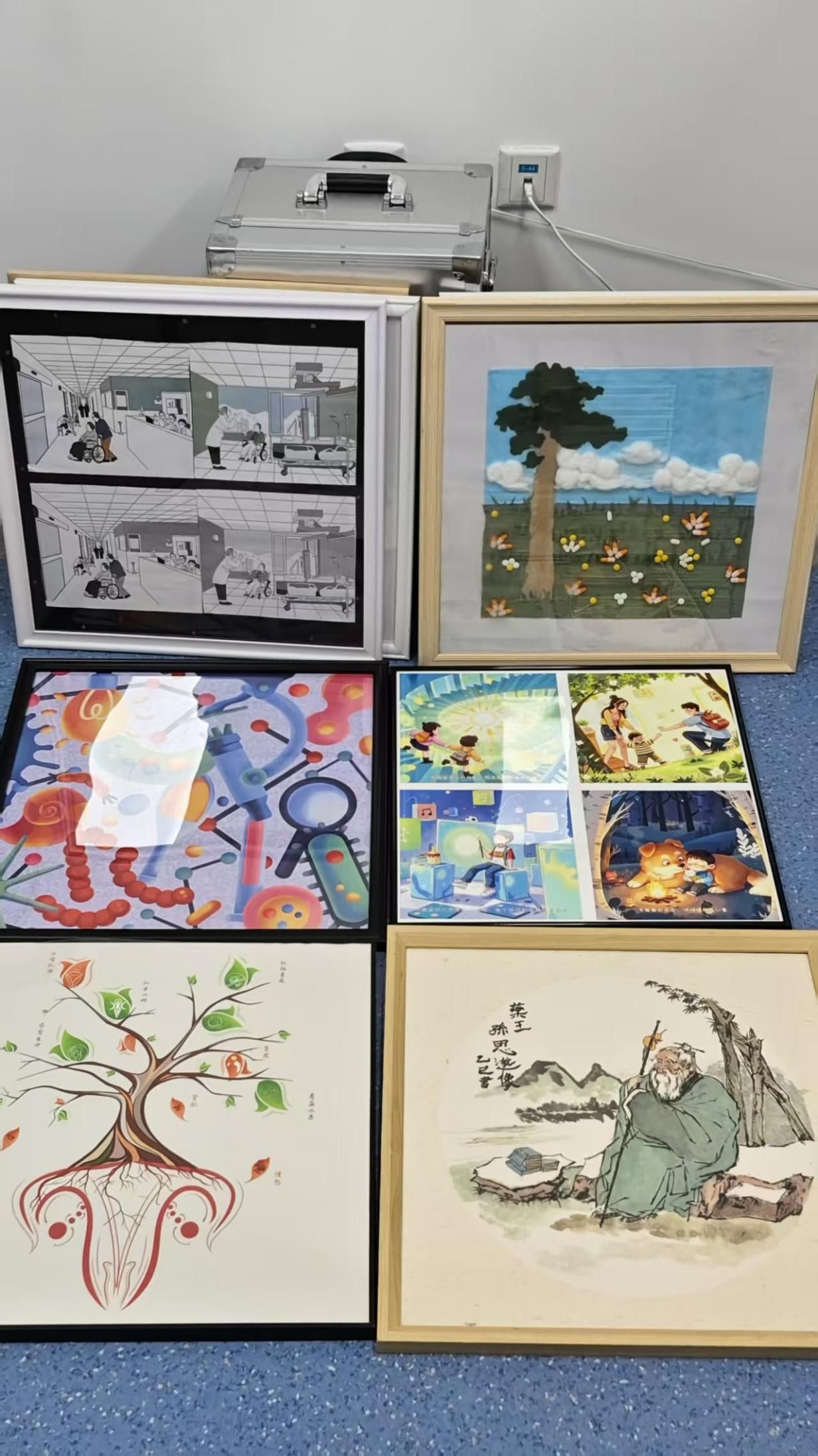 据悉,此次捐赠活动源于学生们对乳腺诊疗中心首席专家宋张骏教授的深切感谢之情。十余年前,他们的导师朱教授不幸罹患乳腺癌。经过宋张骏教授诊疗,目前仍健康生活并带教学生。众学生们偶然得知导师的抗癌治疗与康复过程,便萌生了用自己的专业所长,围绕医疗健康主题,为我院乳腺诊疗中心的患者送去温暖的想法。经过一段时间的精心构思、创作与打磨,十幅主题鲜明、风格多样的画作顺利完成,每一幅都承载着学生们对患者早日康复的美好祝愿。