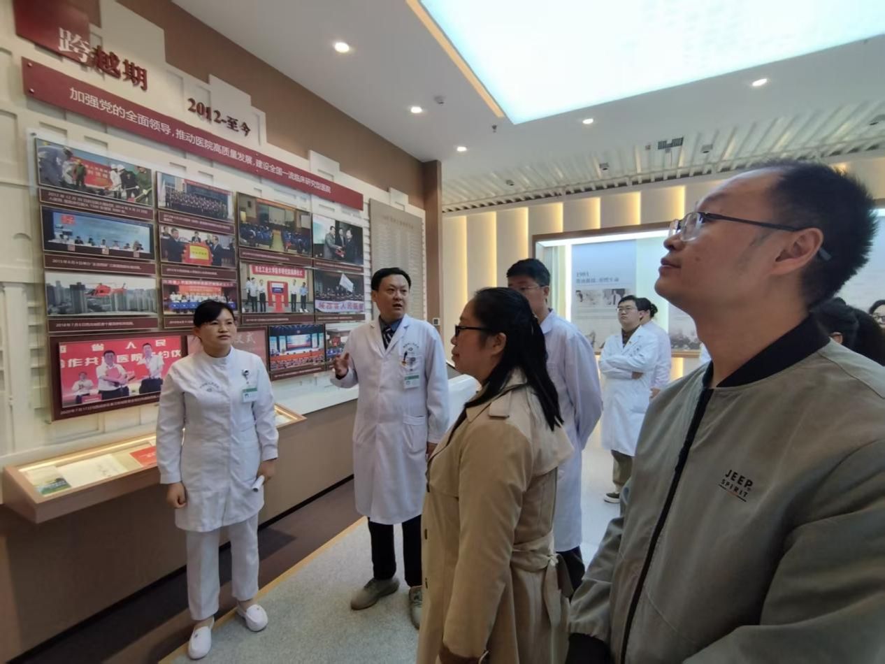 活动伊始,西安工业大学校医院一行参观了我院杨虎城将军像、门诊大厅,在院史馆深入了解了医院的发展历程与文化底蕴。在成人疫苗咨询门诊,一行人深入了解了该门诊的成立背景、功能定位、服务特色、成人疫苗接种的前沿理念与规范化流程。在感染性疾病科病区,详细了解了“三区两通道”院感防控管理体系、主要收治病种、特色诊疗项目及目前学科发展水平。