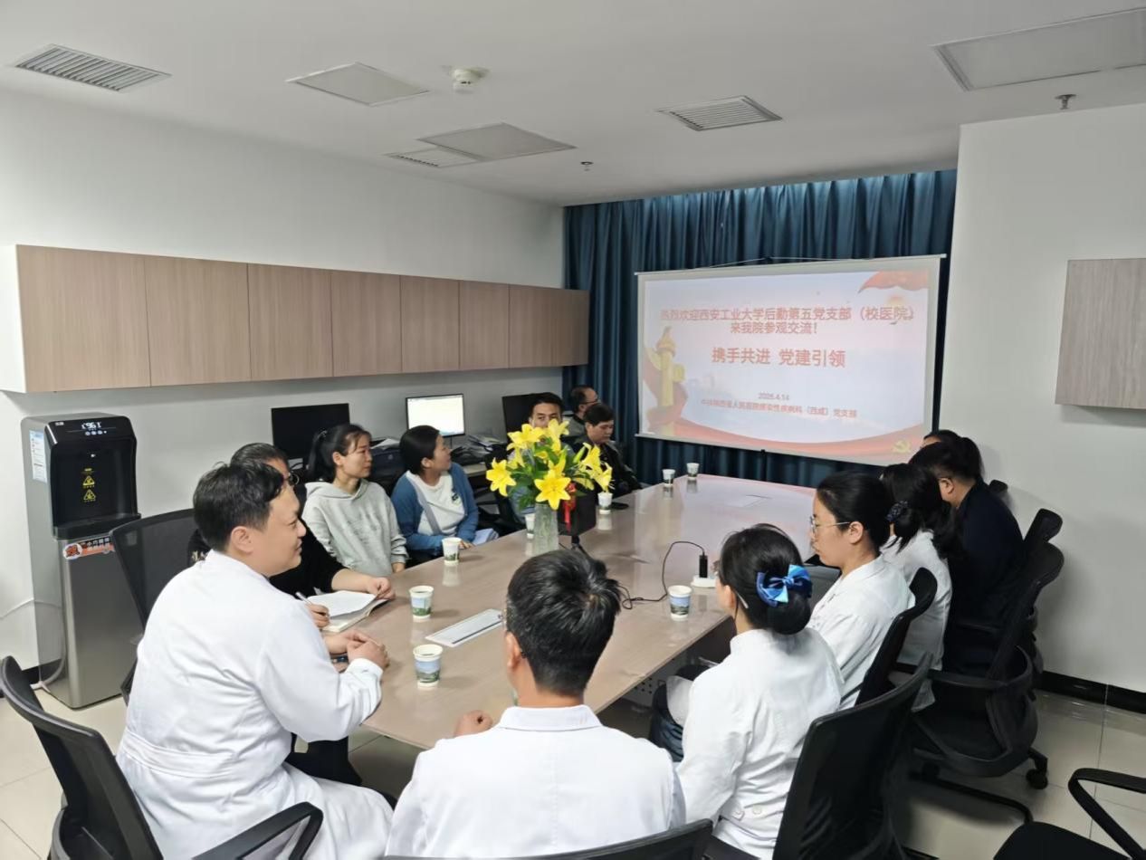 为深入贯彻落实“健康中国”战略,加强医校党建工作交流与合作,4月14日,我院感染性疾病科(西咸)党支部与西安工业大学后勤部第五党支部(校医院党支部)联合举办了主题为“党建引领聚合力,医校共建促健康”的支部共建活动。西安工业大学校医院院长王丽、药剂科王超主任,感染性疾病科(西咸)主任李彧、护士长刘海军、宋琦睿医师等支部党员共同参与了此次活动。