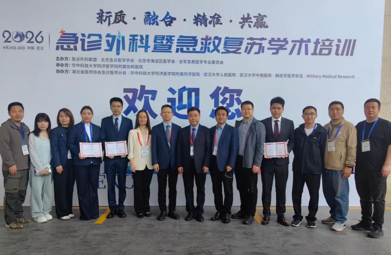 4月24日至26日,2026年急诊外科年会暨急救复苏学术培训在湖北武汉举行。我院急诊外科团队承担3个专题报告和2个大会主持,并在3项技能比赛中获得一等奖2项、二等奖1项,充分展现了团队的专业素养与综合实力。