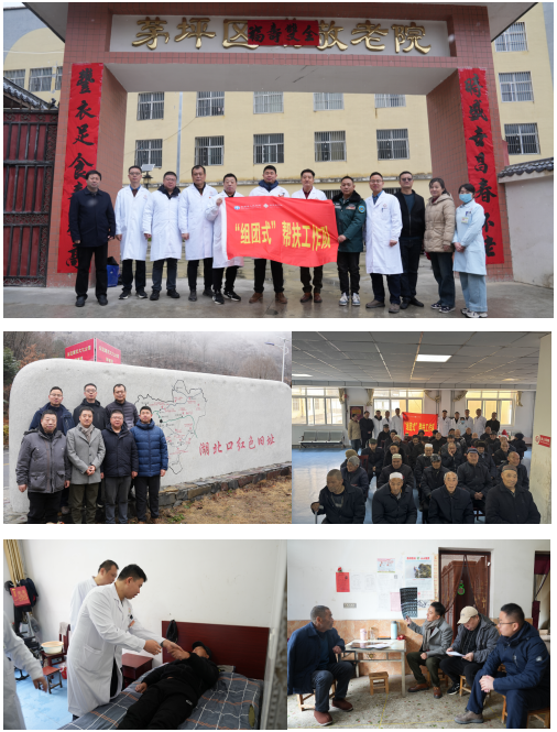 此次系列活动共分为三部分,首先是参观红色教育基地湖北关,聆听湖北关的历史和革命先辈们的英勇事迹,缅怀先烈,继承遗志。随后,队员们在茅坪回族镇区域敬老院开展义诊活动,悉心为老人们进行健康检查,仔细询问身体状况,免费测量血压、血糖,并发放常见疾病药品,反复叮嘱服药、保暖及饮食等事项。最后,队员们还走访了患有疑难重症的困难群众家庭,详细了解健康状况,查阅既往病史并给出专业诊疗建议。